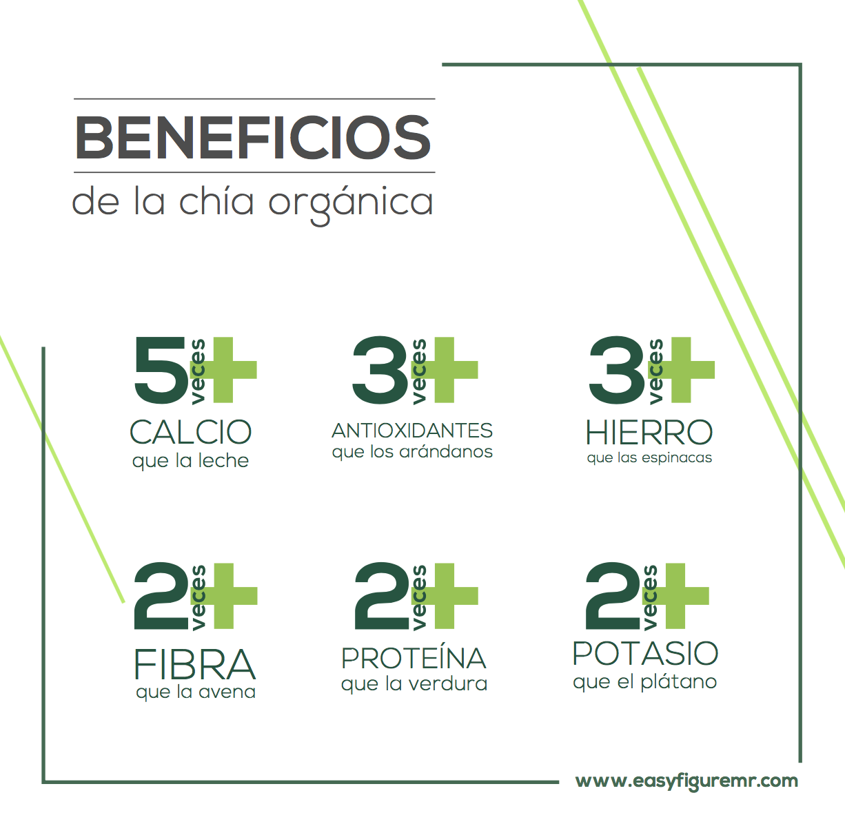 Fortalece los músculos, huesos y tejidos. La Chía contiene proteínas con los que se forma músculo, asi como calcio, que refuerza el sistema óseo.